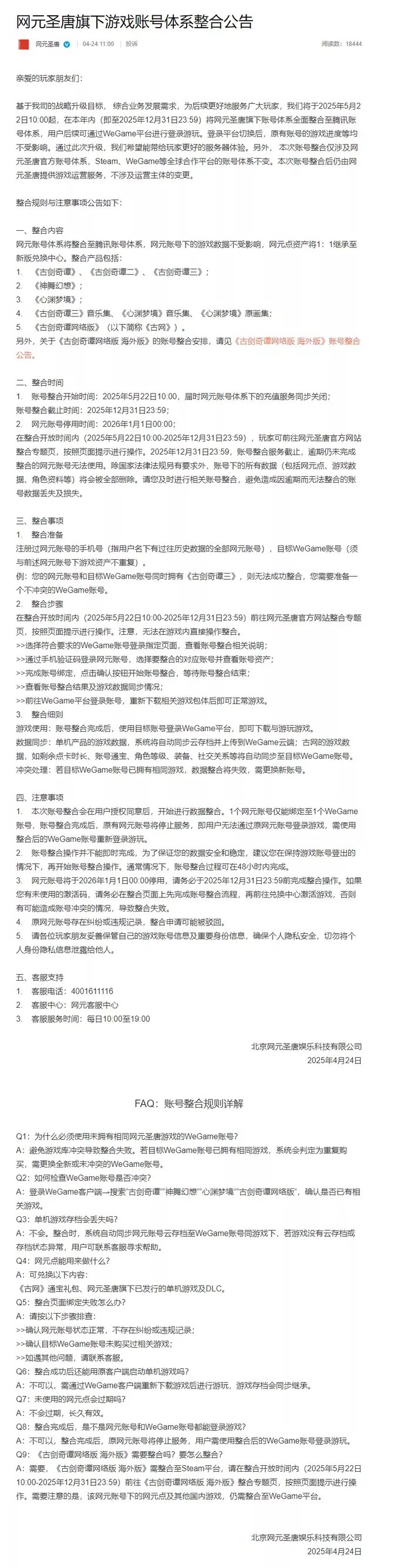 另外本次账号整合仅涉及网元圣唐官方账号体系,Steam与WeGame等全球合作平台的账号体系不变。且账号整合后仍由网元圣唐提供游戏运营服务,不涉及运营主体的变更。