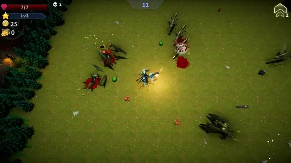 升级与商店系统:通过拾取经验进行升级,并在敌袭间隙前往商店购买道具,增强战斗力。
